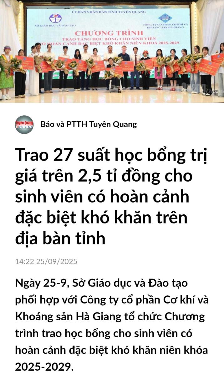 Tin tức sự kiện > Chương trình trao tặng học bổng cho sinh viên có hoàn cảnh đặc biệt khó khăn niên khóa 2025 -2029